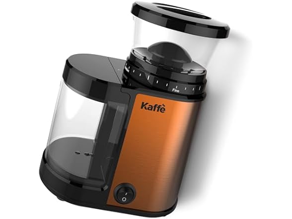 Capacity of up to 5.5 oz with a grinds reservoir of up to 20 cups lets you grind to suit your party size. With its powerful motor and stainless steel burrs, this electric grinder will serve you for years to come. With the transparent chamber, you get to monitor the grinding process. The appliance is easy to clean: Simply use a cleaning brush or wipe parts with a damp, soapy sponge. The dishwasher-safe lid can be washed on the top shelf of your dishwasher. Safety feature: This grinder is designed to operate only once the hopper and grind chamber are securely in place. The attractive brushed copper stainless steel finish adds elegance to any kitchen.
