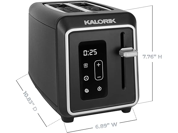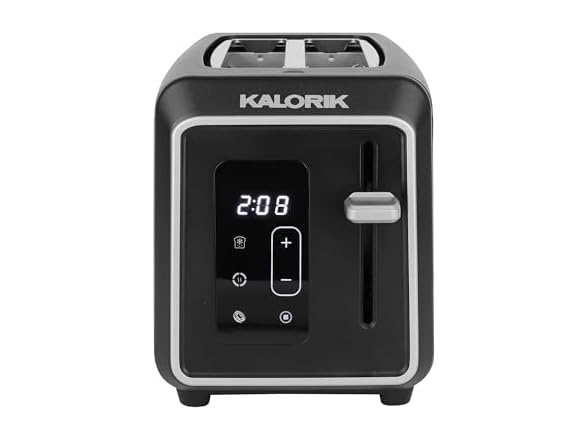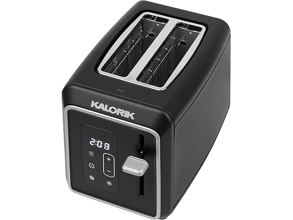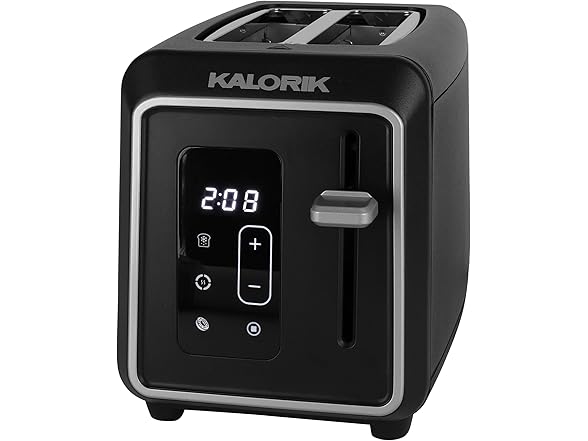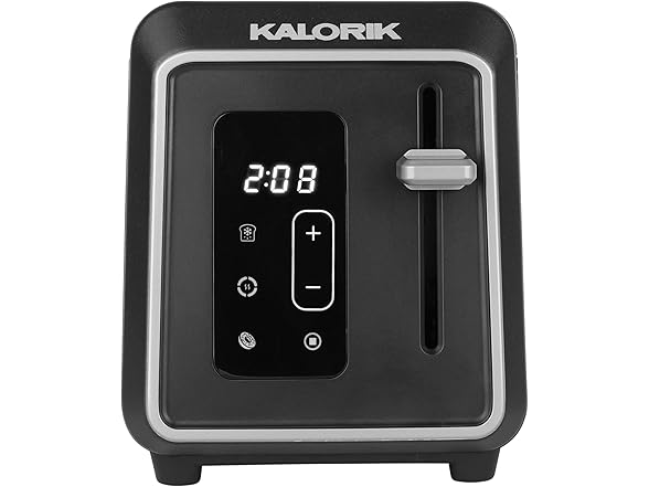 Introducing the Kalorik Designer Series Digital 2-Slice Toaster, where superior cooking meets sleek design. This elegant black toaster with silver accents is not just a stylish addition to your countertop, but multi-functional for various breads and frozen items. With a user-friendly touchscreen LED display and 6 adjustable shade settings, this toaster lets you customize your toast to your preference. The digital countdown timer takes the guesswork out of your morning routine. The extra-wide slots are designed to accommodate a variety of bread types with ease, from thick, hearty slices of artisanal breads to thick-sliced bagels, ensuring that no matter the size or shape, your breakfast options are always perfectly toasted. Never worry about crumbs cluttering your kitchen again with the convenient slide-out crumb tray that makes cleanup effortless. The high-lift lever makes for easy toast retrieval, while the Defrost, Reheat, Bagel, and Cancel functions provide versatility for all your toasting needs. With 850 watts of power, this toaster delivers fast and even browning every time. Designed for convenience, the Kalorik Designer Series Digital 2-Slice Toaster also features a convenient cord wrap to keep your kitchen organized and maximize counter space. Elevate your morning routine with this versatile toaster that combines exceptional culinary performance with everyday practicality.