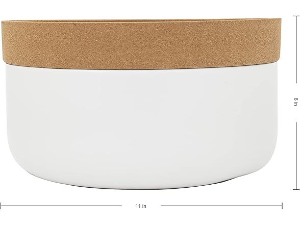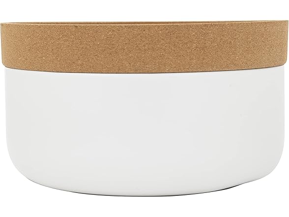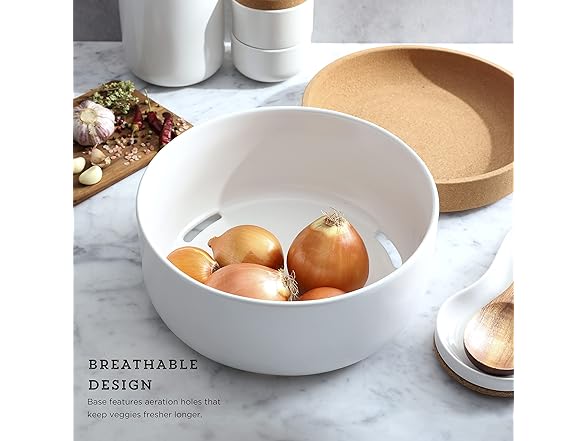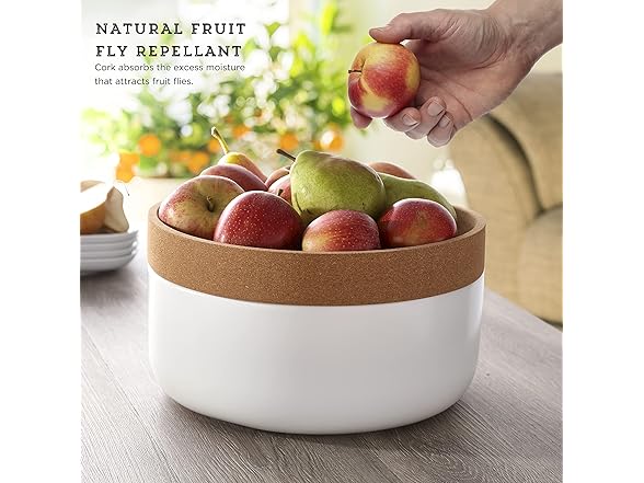Kamenstein 2 Compartment Large Bowl Extends Produce Freshness, 11 x 11 x 6 Inch, Natural Cork and White Ceramic