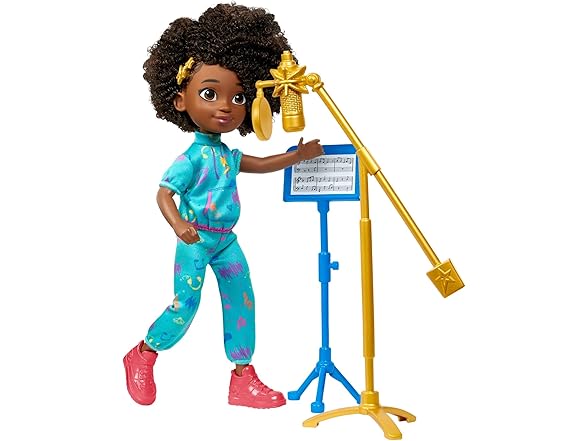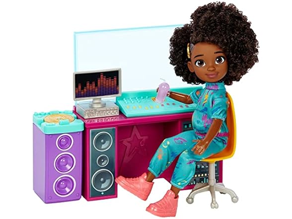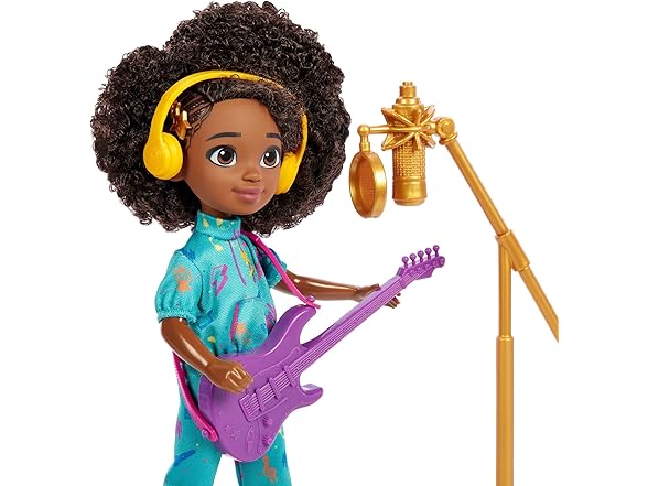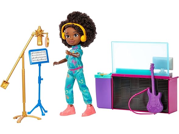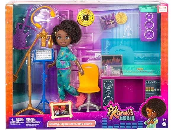 Mattel Karma’s World Making Rhymes Recording Studio 13-Piece Playset with Karma Doll (8.7-inch), Mixing Booth, Guitar, Collectible Record & More