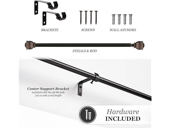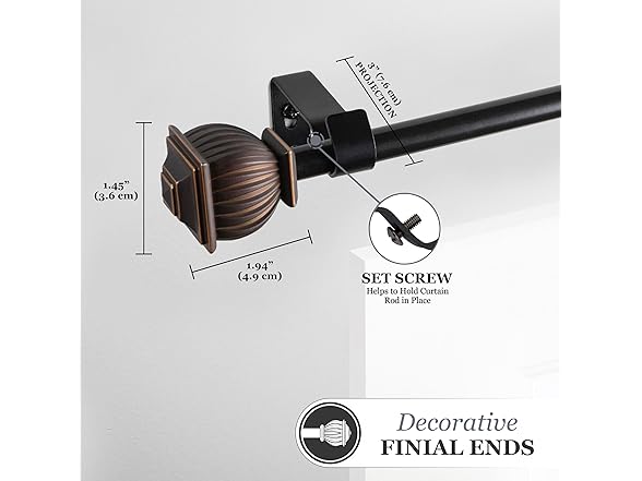 Kenney Beckett Soft Square Window Curtain Rod, Adjustable 48 to 86 Inches, Extendable Curtain Rod Set, Oil-Rubbed Bronze Finish