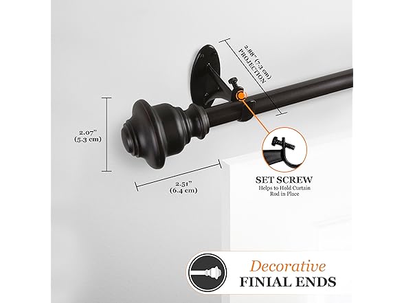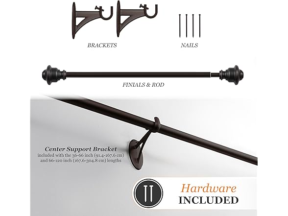 Kenney KN75242 Fast Fit Easy Install Finn Knob End Decorative Window Curtain Rod, 36-66" Adjustable Length, Weathered Brown Finish, 5/8" Diameter Steel Tube