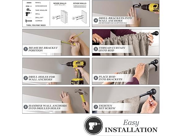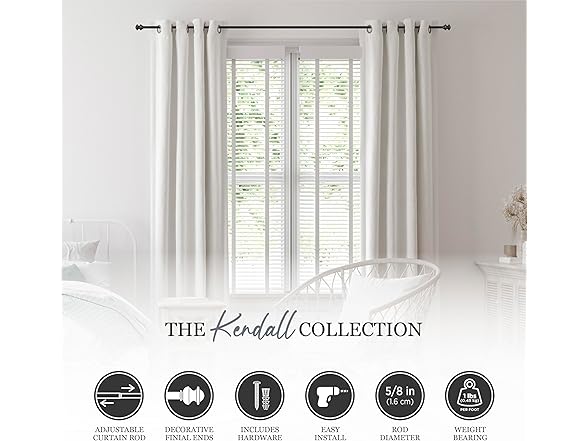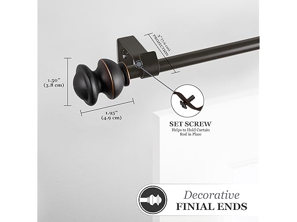 Kenney Kendall Knob Window Curtain Rod, Adjustable 48-86 Inch, Oil Rubbed Bronze