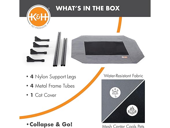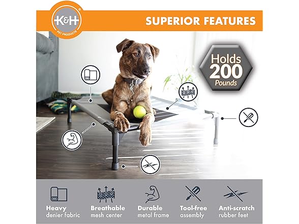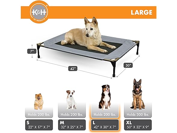 K&H Pet Products Cooling Elevated Dog Bed Outdoor Raised Dog Bed with Washable Breathable Mesh, Dog Cot Bed No-Slip Rubber Feet, Large