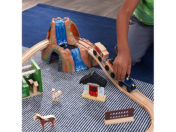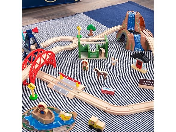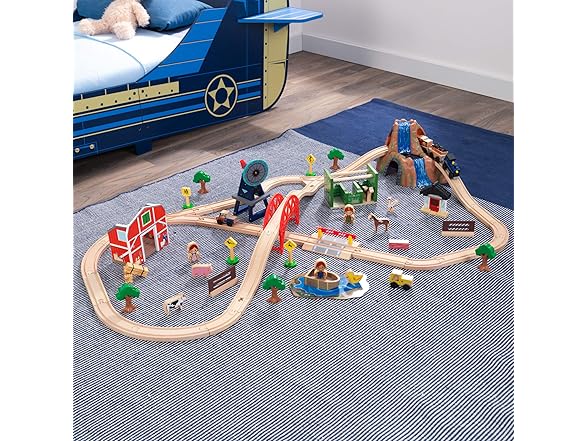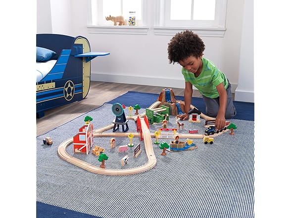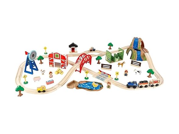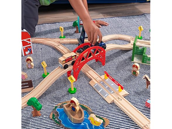 KidKraft Wooden Rural Farm Train Set with 75 Pieces, Children's Toy Vehicle Playset, Gift for Ages 3+