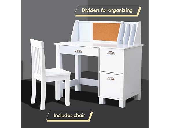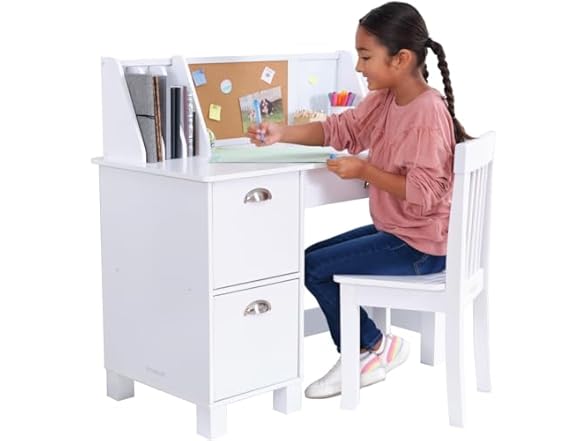 KidKraft Wooden Study Desk for Children with Chair, Bulletin Board and Cabinets, White