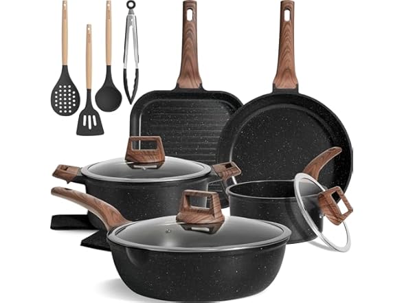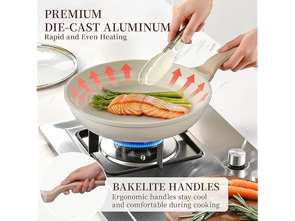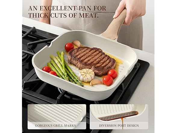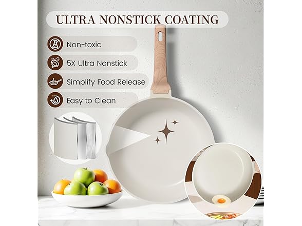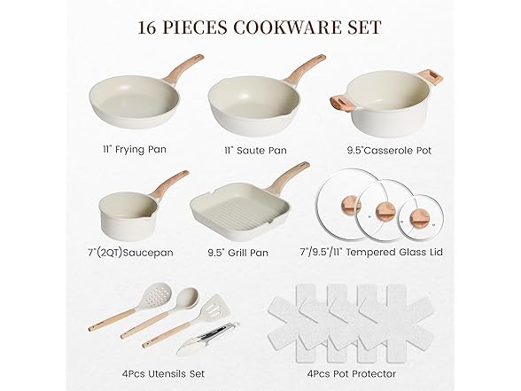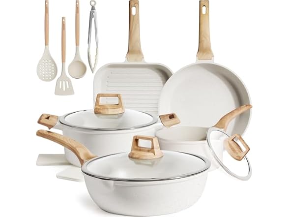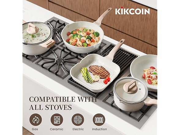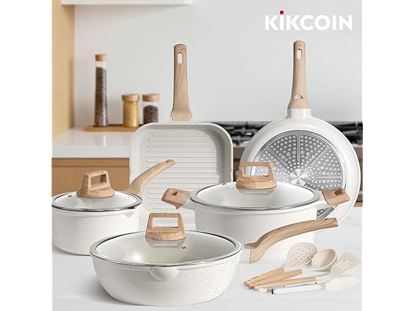 Kikcoin 16Pcs Pots and Pans Set Nonstick Ceramic Cookware Sets Induction Kitchen Cooking Set Non toxic Healthy Non Stick w/Grill Pan,Saute Pan, Ceramic White