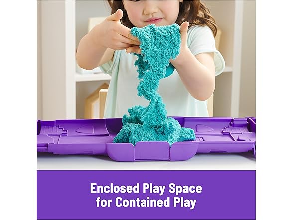 - Enclosed play space: Kids can fold the Castle Case toy open into a play space and get straight to the pretend play fun. The case lays flat, keeping Kinetic Sand contained for endless mess-free sensory play