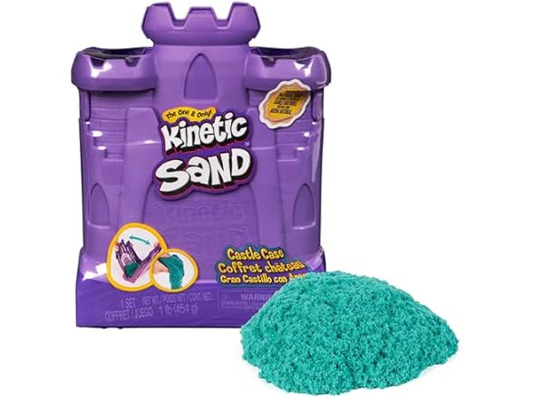 Feel the fun with the Kinetic Sand Castle Case. This Kinetic Sand kit includes 1-pound of teal Kinetic Sand and features a container that unfolds into a play space. Kids can open the case and unleash endless free-flowing creativity as they mold, shape, and squish the teal sensory sand into incredible sand art or anything they can imagine. The Castle Case is designed to lay flat and keeps the sand contained for hours of open-ended play. The One and Only Kinetic Sand is made from natural sand that sticks to itself for easy cleanup. It n-ever dries out, so you can create again and again. Let it flow through your hands – it’s so satisfying, you won’t be able to put it down. After play, the Castle Case folds back up for convenient storage and easy cleanup until next time. Kinetic Sand is an exciting alternative to arts and crafts modeling clay and is a welcome addition to the craft table, sensory bin, kids activities time and Montessori toys. Kinetic Sand promotes fine motor skills and creativity in kids aged 3 and up through independent tactile play. Get your hands in the sand with the Kinetic Sand Castle Case.