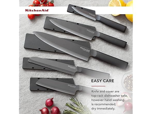 - EASY CARE: KitchenAid knives are top rack dishwasher safe. To extend the life of your cutlery, hand washing is recommended. Dry immediately