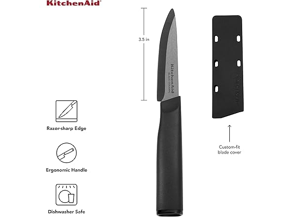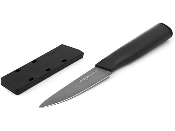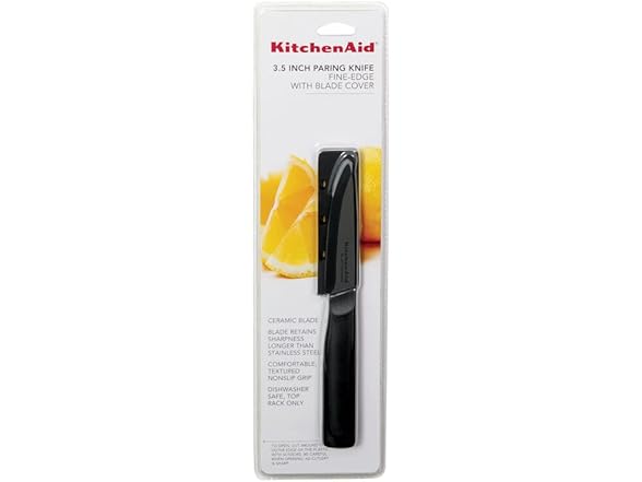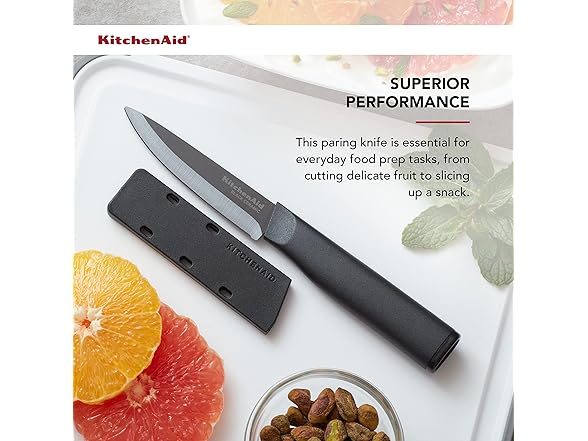 - CUTLERY ESSENTIAL: The KitchenAid fine-edge paring knife is ideal for small everyday food prep needs, from cutting delicate fruit to slicing up a snack. Includes a custom-fit blade cover for secure, safe storage.