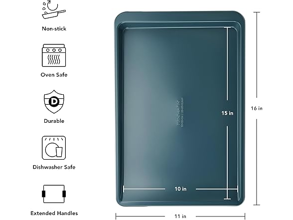 KitchenAid Nonstick Swiss Engineered Aluminized Steel Cookie Slider, Dishwasher Safe, Agave, 10x15 Inch