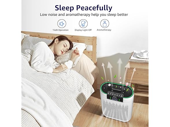 - Your Silent Partner: When the large room air purifier for the bedroom is operating in sleep mode, our HEPA filter air purifiers fan operates at low speed with low noise (less than 15dB), the lights on the home air purifiers can be turned off with a single press of the light-off button, You can also enhance the ambiance of your bedroom by adding 2-3 drops of your favorite essential oil (essential oil not included) to the aroma pad, allowing you to enjoy fresh and clean air in sweet dreams