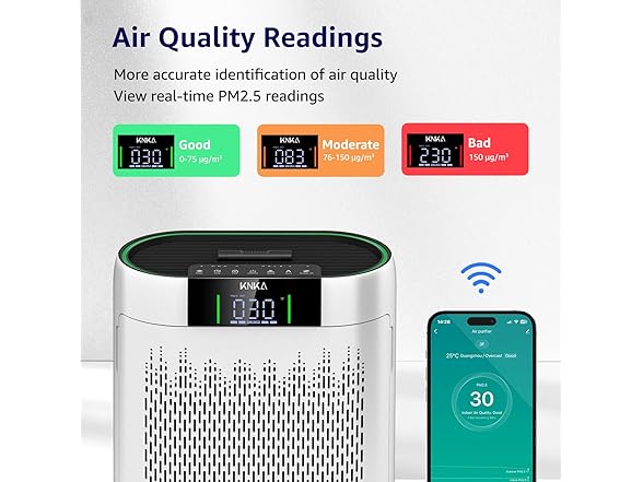 - High-Efficiency TRUE HEPA Air Purifier: KNKA TRUE HEPA Air Purifier for the home can effectively capture airborne particles with a size of 0.3 microns, including pet hair, smoke, PM 2.5, pollens, large dust particles, and bad smells, This room air purifier coverage area up to 1740 sq ft, fits in different spaces like bedrooms, living rooms, offices, dorm, basements, classroom, and kitchens. KNKA air purifier bedroom only requires one filter, saving on your operating costs
