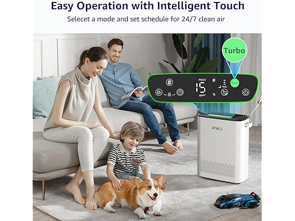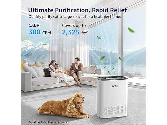 - Effortlessly Purifies Spaces up to 2325 Sq. Ft: KNKA True HEPA air purifier is designed for bedrooms, living rooms, offices, and large open areas. Its powerful fan and circulation system quickly remove airborne pollutants, ensuring fresh air for your family in any environment.
