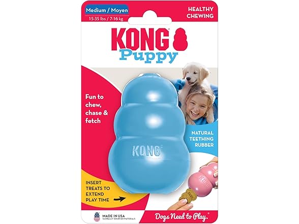 - Soft Puppy Rubber: The KONG Puppy is developed with a customized natural rubber for a growing puppy's teeth; it is gentle on their 28-baby teeth, and offers appropriate chewing enrichment