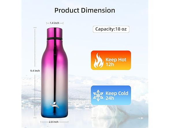 Konokyo Insulated Water Bottle with Strap,18 oz Double Wall Stainless Steel Vacuum Bottles Metal Water Flask,Wonderland