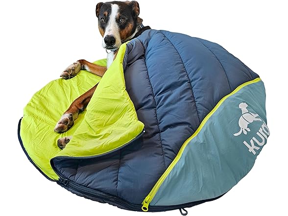 Kurgo Canyon Puffer Pup Sack, Travel Dog Bed for The Outdoors, Pet Sleeping Bag for Camping and Hiking, Packable with Stuff Sack, Durable, Water-Resistant