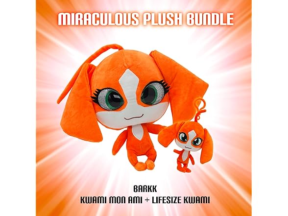 - Double the Miraculous Fun!: This Miraculous Ladybug Kwami Plush Kit combines the best of both worlds! It includes a cuddly 9-inch plush toy with captivating resin eyes, perfect for snuggling, and a lifesize 5-inch keychain plush for on-the-go adventures.