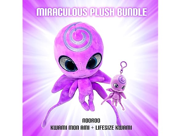 - Double the Miraculous Fun!: This Miraculous Ladybug Kwami Plush Kit combines the best of both worlds! It includes a cuddly 9-inch plush toy with captivating resin eyes, perfect for snuggling, and a lifesize 5-inch keychain plush for on-the-go adventures.