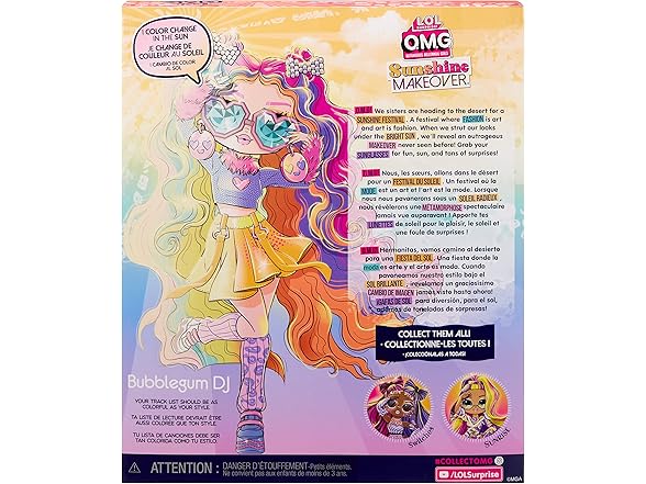 - INTRODUCING LOL Surprise O.M.G. Sunshine Makeover fashion doll Bubblegum DJ. She loves to mix up her colorful fashions from head to toe just like she mixes her music.