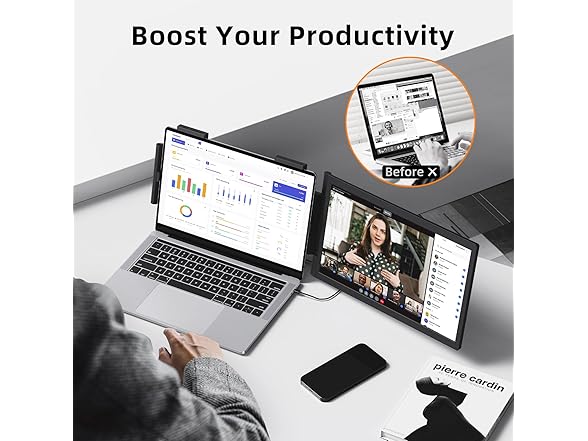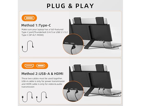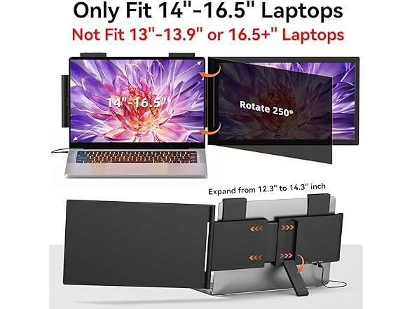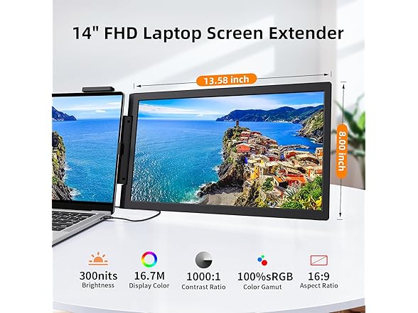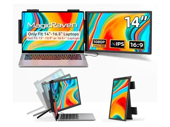 Laptop Screen Extender, 14" 1080P IPS Portable Monitor Travel Monitor for 14-16.5" Laptops with USB-C/HDMI Port, Plug and Play Attachment Screen for Windows/Mac/Android/Switch/PS5/Xbox