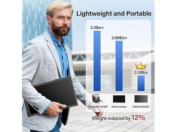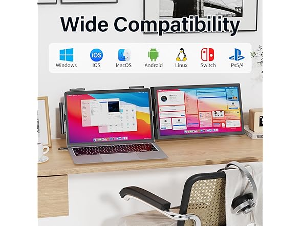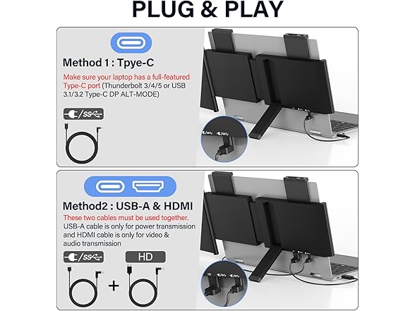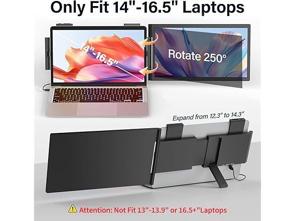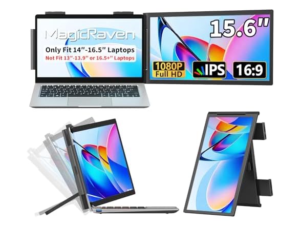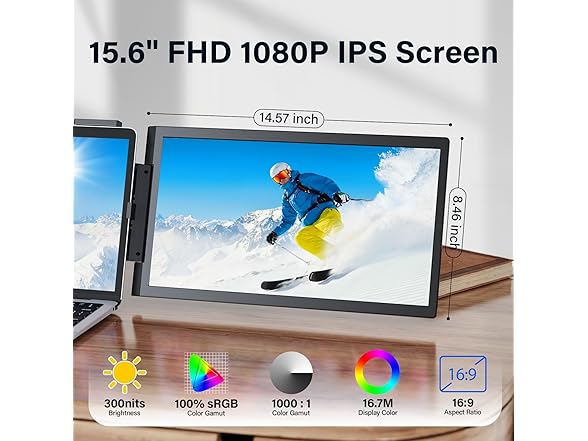 Laptop Screen Extender, 15.6" 1080P IPS Portable Monitor, Travel Monitor for 14-16.5" Laptops with USB-C/HDMI Port, Plug and Play Attachment Screen for Windows/Mac/Android/Switch/PS5/Xbox