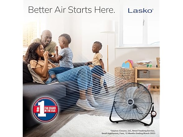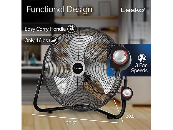 - POWERFUL AIR CIRCULATION: Equipped with three high-velocity fan blades and three speed settings, this Lasko fan has superior air movement to efficiently cool large areas