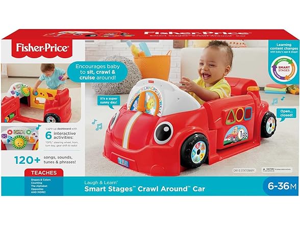 Fisher-Price Baby Toy Laugh & Learn Crawl Around Car Red Activity Center with Educational Music & Lights for Infants Ages 6+ Months