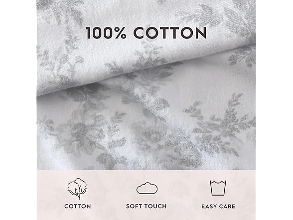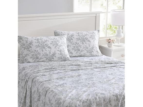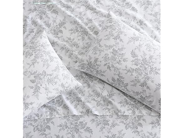Laura Ashley - Flannel Sheets Twin Size, Anti-Pilling & Wrinkle Resistant Cotton, Touchably Soft for All-Season Comfort - Bed Sheets with Matching Pillowcase & Fitted Sheet (Vanessa Grey)