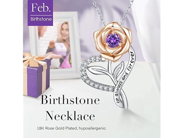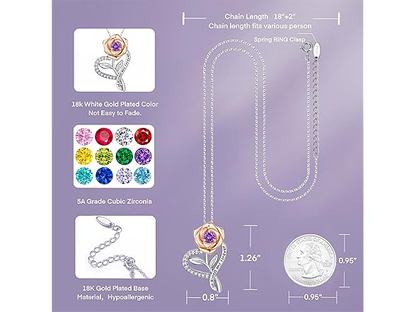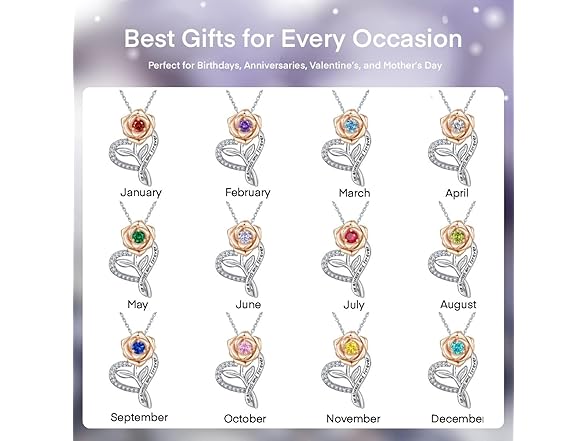 LAVALE Rose Flower Birthstone Necklace for Women, Jewelry Gifts for Women Wife Girlfriend Her, Perfect Mothers Day Gifts for Mom Grandma