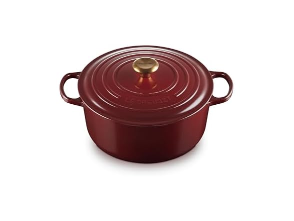 In the Box:- (1) Le Creuset 7.25 qt Enameled Cast Iron Signature Round Dutch Oven- Your choice of color