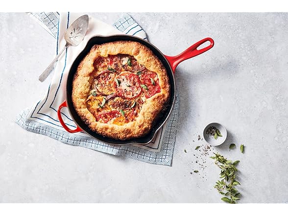 In the Box:- (1) Le Creuset 9" Diameter Enameled Cast Iron Signature Iron Handle Skillet- Your Choice of color