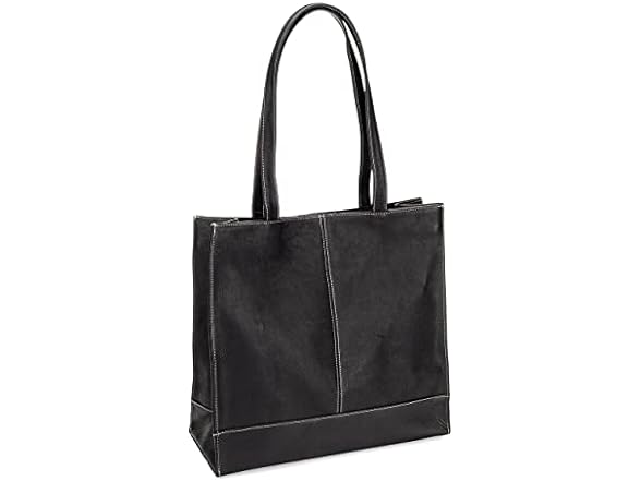 The Le Donne Leather Everly Tote combines practical storage space and organization with sophisticated style. This well-designed tote is sure to become your go-to bag for work, travel and everyday errands. It features lovely contrast stitching and a sleek, simple silhouette made from premium leather. Four metal feet on the bottom help the Everly tote stand upright and avoid damage when setting it down on flat surfaces. Premium full-grain Colombian Vaquetta leather Handcrafted by skilled Colombian craftsmen Antique-style hardware Magnetic snap closure Lined interior One zip and two slip interior pockets Dual tote strap Four metal feet Strap lengths: 23” Drop length: 11” Dimensions: 12.5” x 12.5” x 5” Weight: 1.6 lbs.