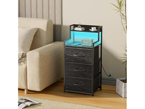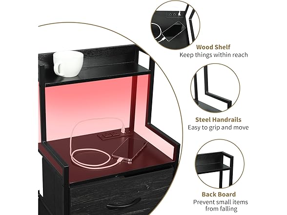- Side Tables With LED Light: With 6 switchable colors, the soft lighting design brings a warm and cozy atmosphere to your bedroom and living room. The led nightstand can also be used as a night light to help you overcome the fear of darkness