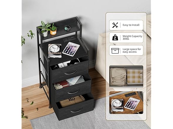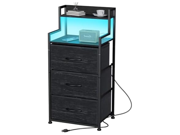 - Tall Night Stand with Storage Shelves: Leadpro's 3 drawers nightstand comes with 3 fabric drawers, 2 open shelves and extra tall design. Non-woven fabric drawer for your personal belongings and a wide open storage shelves hold decorations, books, photos, remotes and other personal items for organizing private things.Small open shelf on the top keeps your necessities within arm's reach