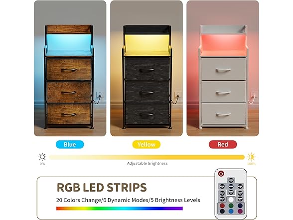 Enhance your bedroom with our Tall 3-Drawer Nightstand, which combines practicality with modern elegance. Featuring three drawers, it offers ample storage for your nighttime essentials, keeping your space organized and clutter-free. A standout feature is the integrated LED lighting with six adjustable color settings, enabling you to create the perfect ambiance. Whether youβre unwinding after a long day or energizing for a busy morning. The tall design maximizes vertical space for convenient access without bending down, making it ideal for both adults and children.Versatile in its use, it also fits seamlessly into living rooms, hallways, or home offices as a chic storage solution.