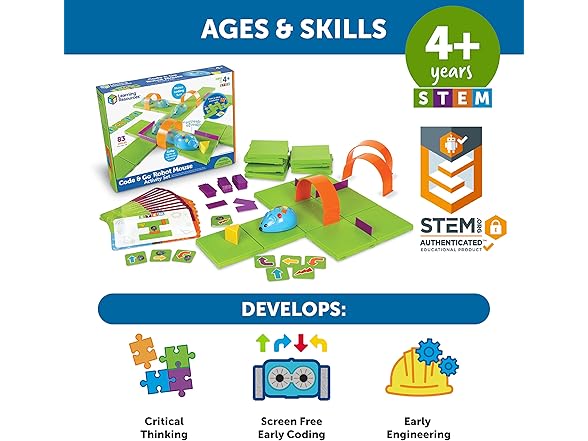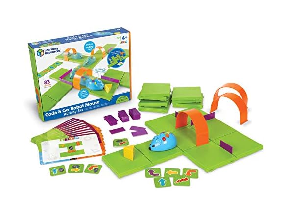 - This coding set includes 16 maze grids create a 20" X 20", 22 maze walls, 3 tunnels, 30 double-sided coding cards, 10 double-sided activity cards, cheese wedge, and activity guide to provide a hands-on introduction to coding concepts.