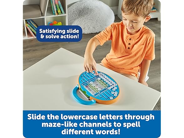 - Slide, Spell, and Learn: Slide the lowercase letters through maze-like channels to spell different words!