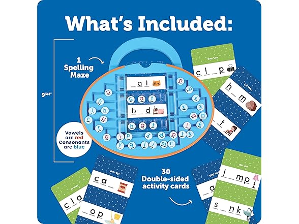 Looking for an easy way to help kids learn school-ready skills? Check out this spelling maze that helps little ones slide, solve, and spell their way to new language skills! Kids slide the lowercase letters through maze-like channels to spell different 3- and 4-letter words. How does this preschool toy help kids learn? This set's 30 activity cards also challenge kids to fill in missing sounds, spell simple words, explore word endings, and more. Plus, take spelling on the go with the maze's one-piece design, easy-grip handle, and built-in storage—cards fit on the front! Best of all, the Skill Builders Spelling Maze makes an easy addition to collections of play alphabet flash cards, Montessori toys, and other classroom must-haves! What are the main skills that kids can learn with this toy? The Skill Builders Spelling Maze helps kids develop early letter and spelling skills. How many pieces are included with this toy? This set includes 21 pieces. What is this toy made from? Our toys are made from durable, wipe-clean plastic that's designed for years of learning fun. This toy is compliant with EPA lead regulations. Where can I get a replacement part? While we're unable to stock replacements for every component that comes with our toys, we'll do our best to find the part or piece that makes your toy whole again. Just submit a request here with a description of the piece, and we'll let you know if we find it.