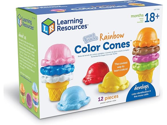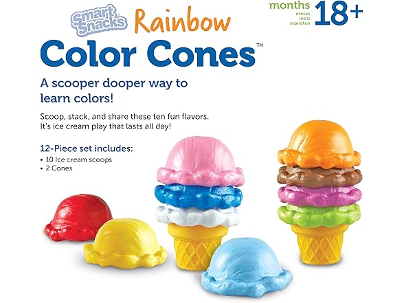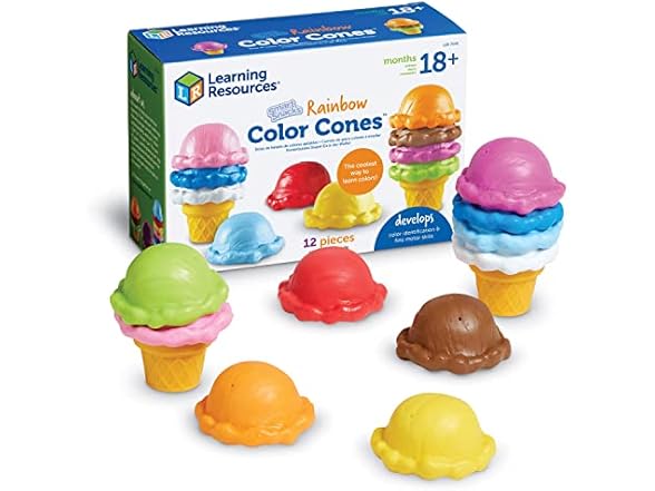Create a vibrant, interactive learning environment for your little one with the Learning Resources Smart Snacks Rainbow Color Cones, the perfect educational toy that grows with your child from toddlerhood through preschool years. These delightful ice cream toys transform everyday play into valuable learning experiences, encouraging essential early childhood development in multiple areas. As children explore the 10 brightly colored scoops and stack them onto the two included cones, they naturally develop crucial fine motor skills and hand-eye coordination while engaging their creativity. Color recognition becomes an exciting adventure rather than a tedious lesson, with each vividly hued scoop inviting children to identify and name its unique shade. For more advanced learners, a thoughtful educational feature awaits discovery—the actual color names printed inside each scoop, allowing children to gradually connect colors with their written names. The durable, child-friendly construction means these cones can withstand enthusiastic play sessions. Whether used in a classroom setting, during homeschool activities, or simply during playtime, the Rainbow Color Cones provide a "scooper dooper" way to learn that children will return to repeatedly, finding new ways to engage with this thoughtfully designed toy that offers educational value wrapped in pure fun.