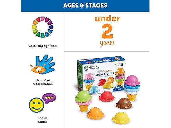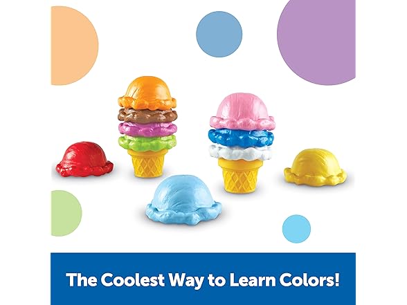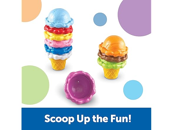 - DEVELOPMENTAL LEARNING - Helps children develop fine motor skills, hand-eye coordination, and abilities through stacking, sorting, and creative play with 10 colorful ice cream scoops and 2 cones.
