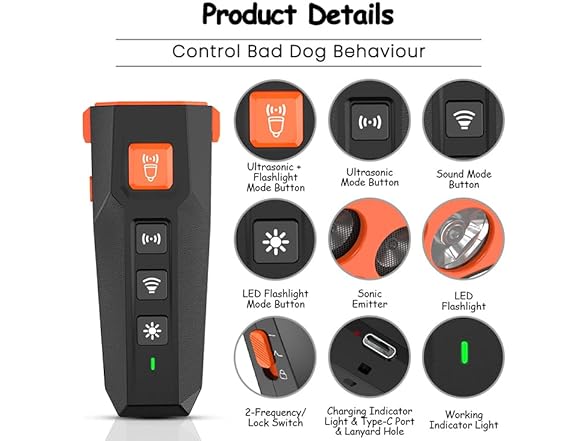 LECODY Ultrasonic Dog Repeller with Remote, Adjustable Settings, Waterproof and Rechargeable, for Indoor and Outdoor Use, for Small and Medium Dogs
