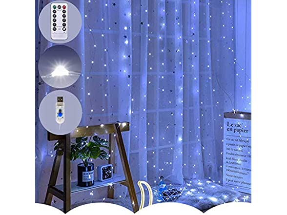 Led Curtain Lights USB Window Fairy Lights Decoration Remote Controlled LED String Lights ((Type 4-White)