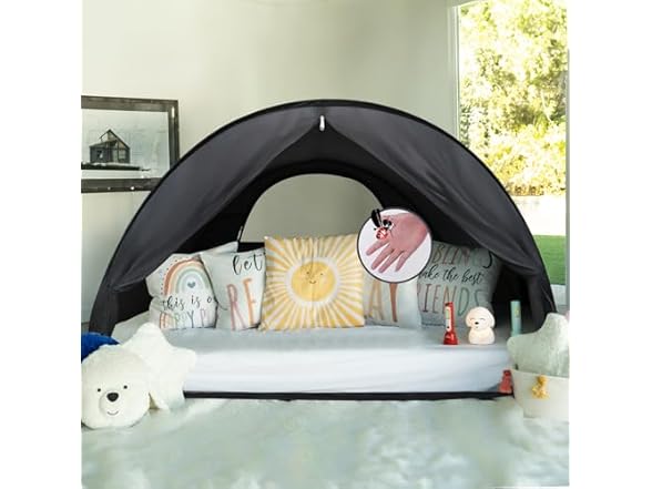 LEEDOR® Pop Up Bed Tent with Mesh & Shade Cloth Window,Bed Canopy Shelter Cabin Indoor Privacy Space Sleeping Tents,Blackout Light Reduction Breathable Dream Tent Portable for Kids Adults Twin