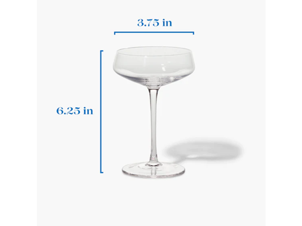 Has the look of a handwash glass, but is actually dishwasher-safe. The Coupe Glass makes entertaining chic and effortless. Perfect for cocktails or sparkling wine, the beautiful shape is sure to impress.