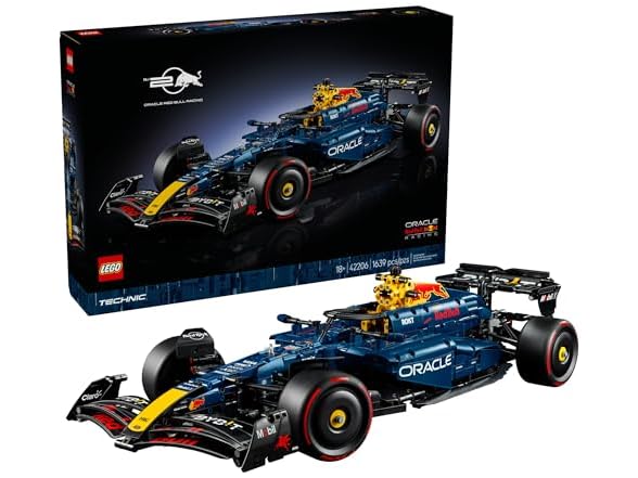 Imagine the roar of the engines as you build your own LEGO Technic Oracle Red Bull Racing RB20 F1 Car model kit (42206). Enjoy the challenge as you assemble the elements and functions of this 1:8 scale F1 model car with its distinctive livery, printed tires and authentic features. Steer the car into position using the knob on the roof or the steering wheel in the cockpit before testing the suspension at the front and rear of the car. Examine the 2-speed gearbox and differential and remove the engine cover to see the V6 engine with its moving pistons. Then adjust the spoiler to mimic the DRS before displaying your car in tribute to your passion for F1 racing. Drive your desire for high-performance vehicles and enjoy a relaxing building project with the collection of LEGO Technic vehicle sets for adults (sold separately). Get the most out of your sets with the LEGO Builder app, where you can zoom in and rotate your models in 3D, build as a team and save all your sets in one place. Contains 1,639 pieces.