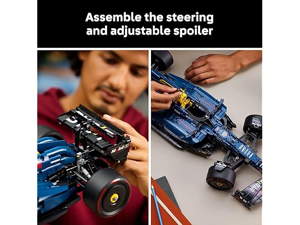 - F1 RACING CAR MODEL – Celebrate your love for motorsports as you explore details including front and rear suspension, steering, an adjustable spoiler and printed tires