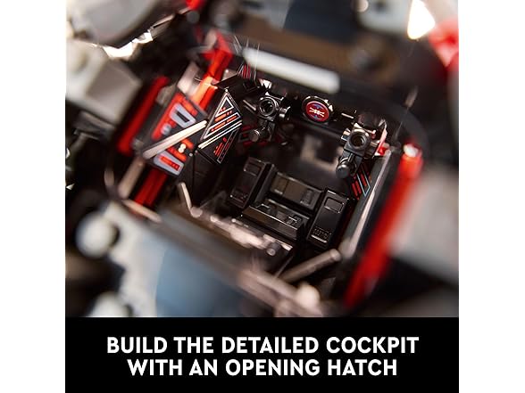 - Collectible LEGO Star Wars starfighter – Use neat building techniques to recreate the TIE Interceptor’s distinctive wing design, detailed cockpit with an opening hatch, laser cannons and more