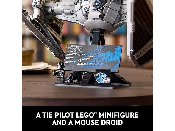- Buildable TIE Interceptor model – Your mission: to build a large scale LEGO Star Wars Ultimate Collector Series version of a TIE Interceptor, first seen in Star Wars: Return of the Jedi
